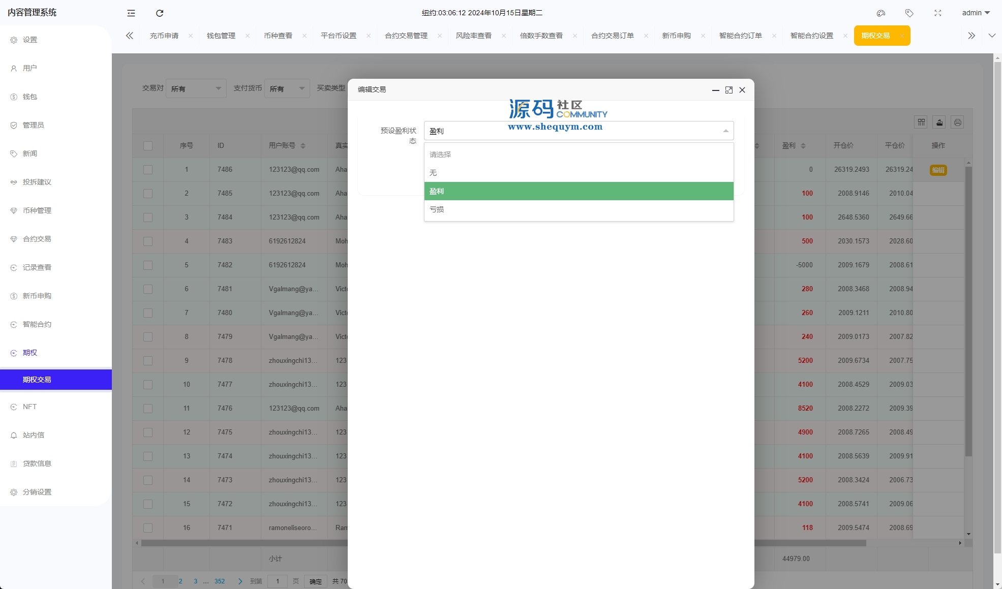期权交易(俗称秒合约-盈亏控制-单控-群控)