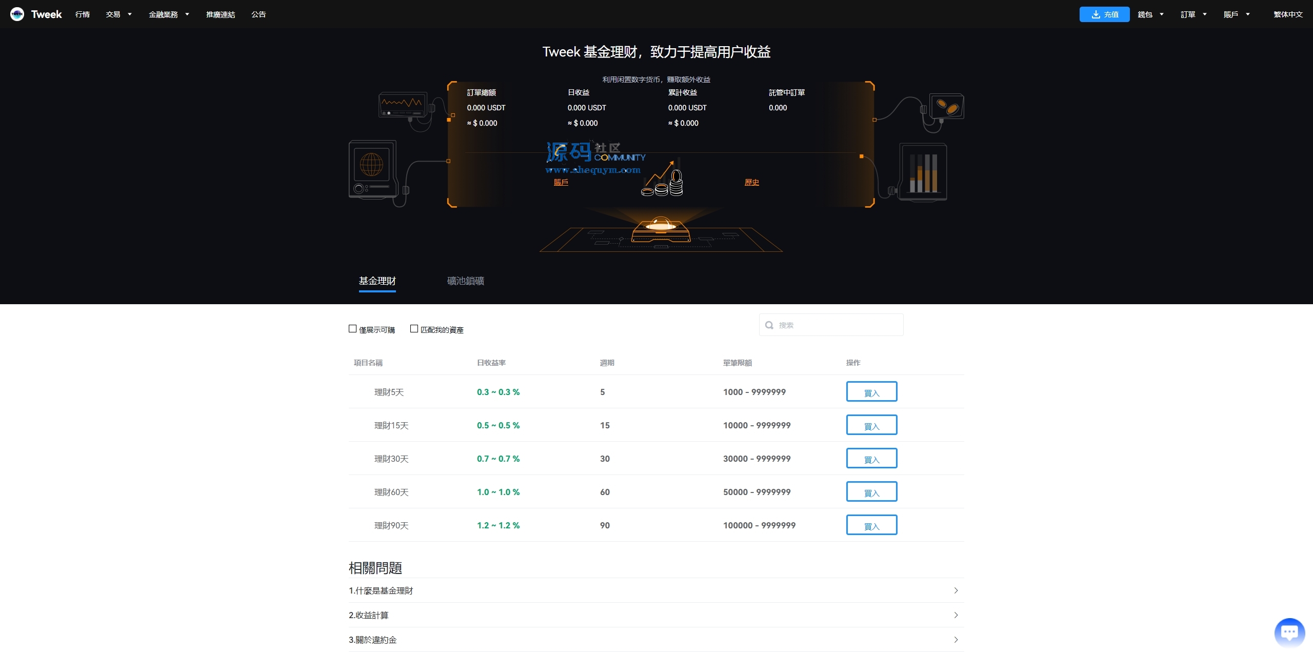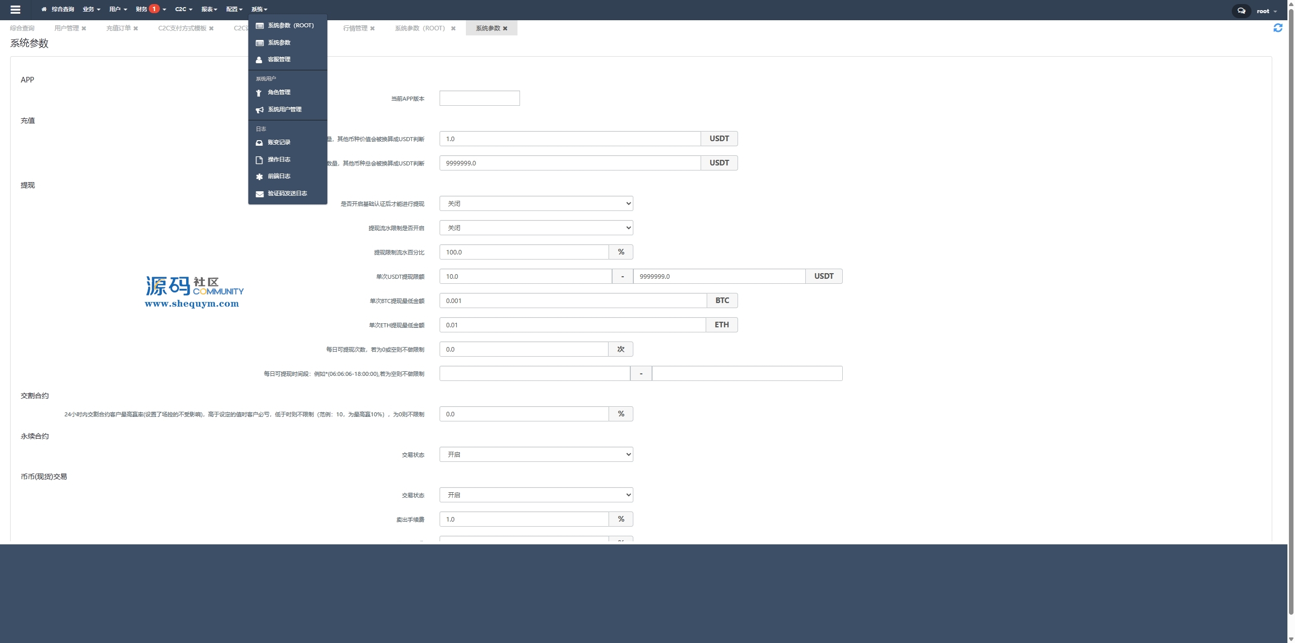 系统功能:永续合约、交割合约、现货交易、理财、矿池、质押借币、C2C等功能