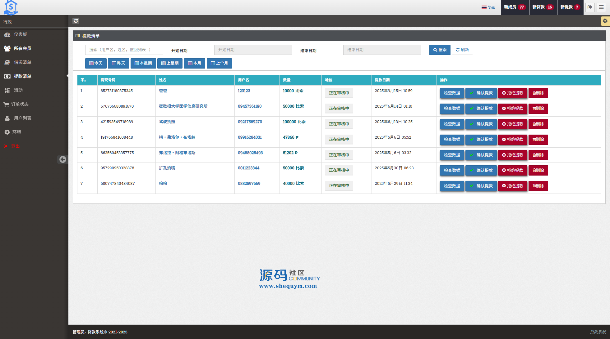 系统使用laravel框架开发,前端单语言后台多语言功能完善符合正常需求,支持提现码,信用分等新功能