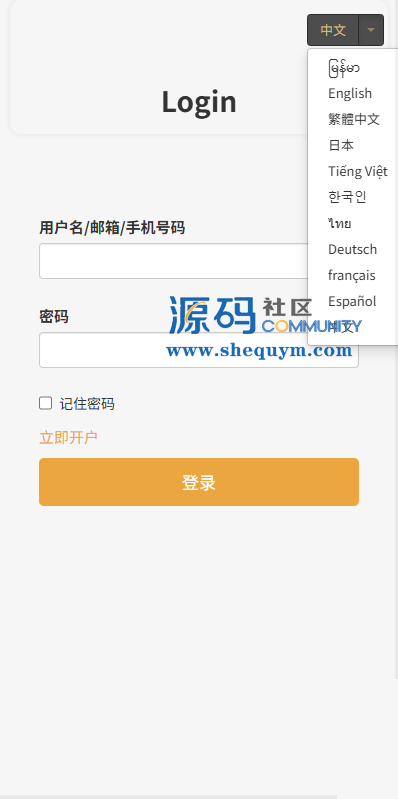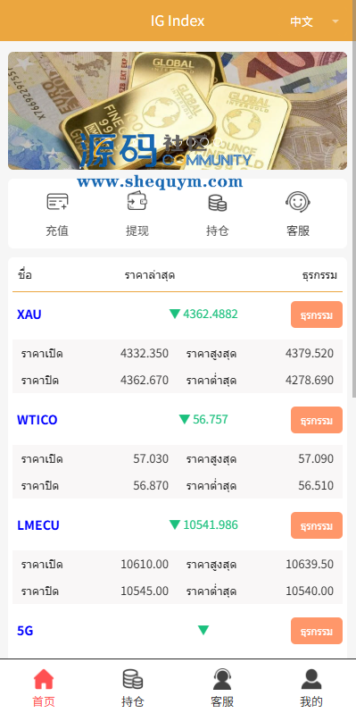 前端自带多语言,产品行情正常,订单控支持实名认证,USDT跟银行卡提现