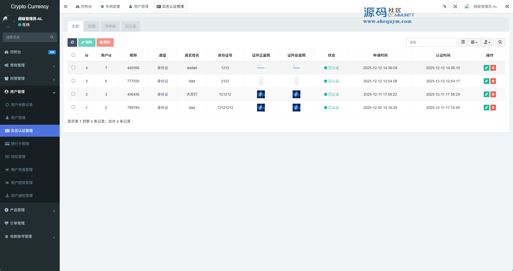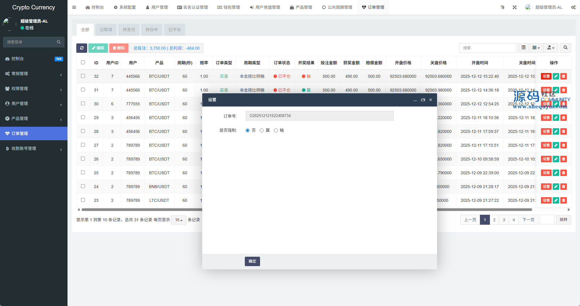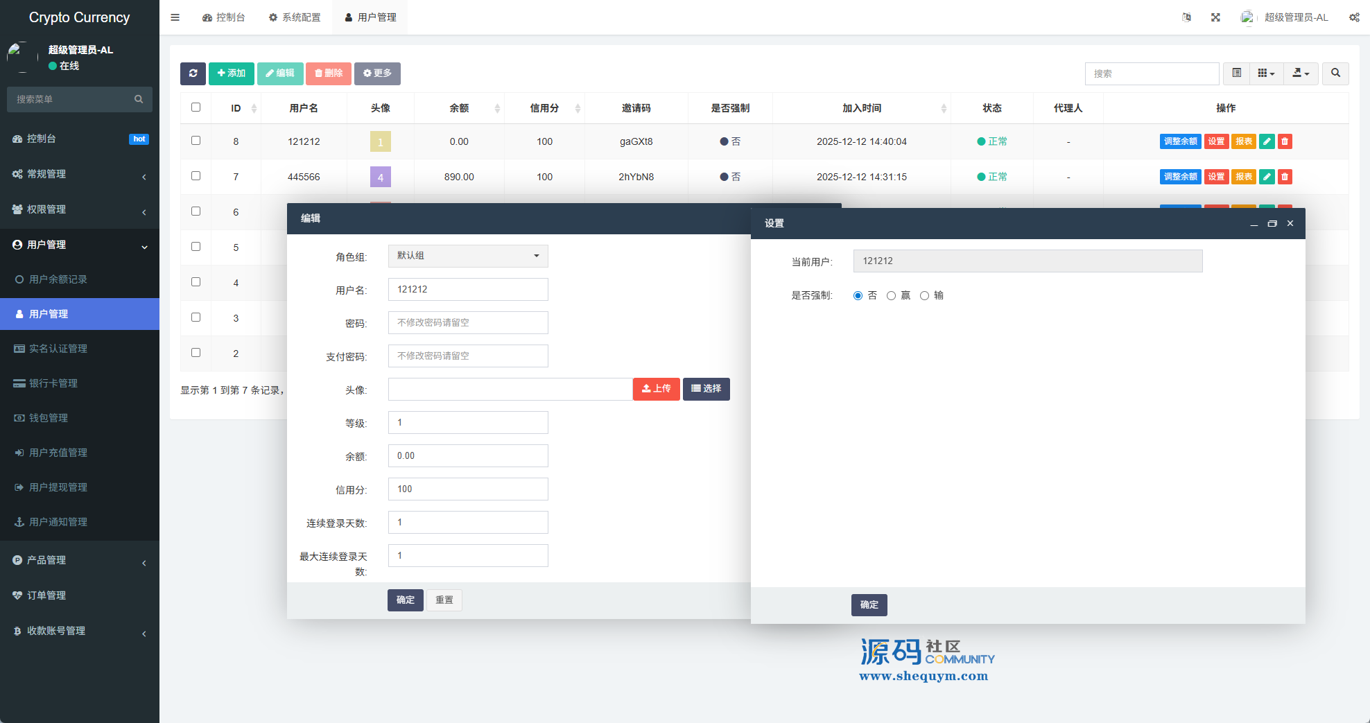 系统功能:信用分,VIP等级,实名认证,银行卡usdt充值提现,用户单控,订单控制等功能