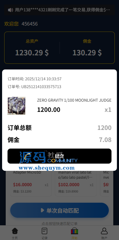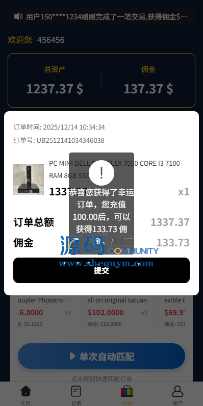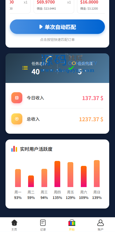 自由设置每一个订单的金额及佣金比例,亦可直接设置1-40单;若设置的订单金额超过用户余额,则显示:请充值XXX元,以获得佣金XXX元。