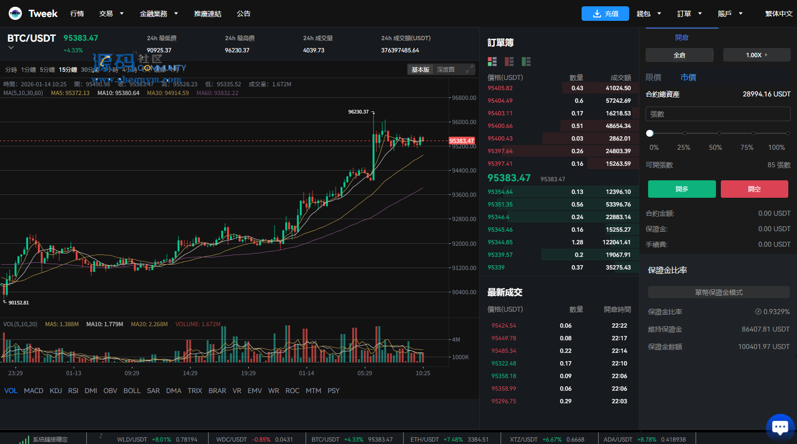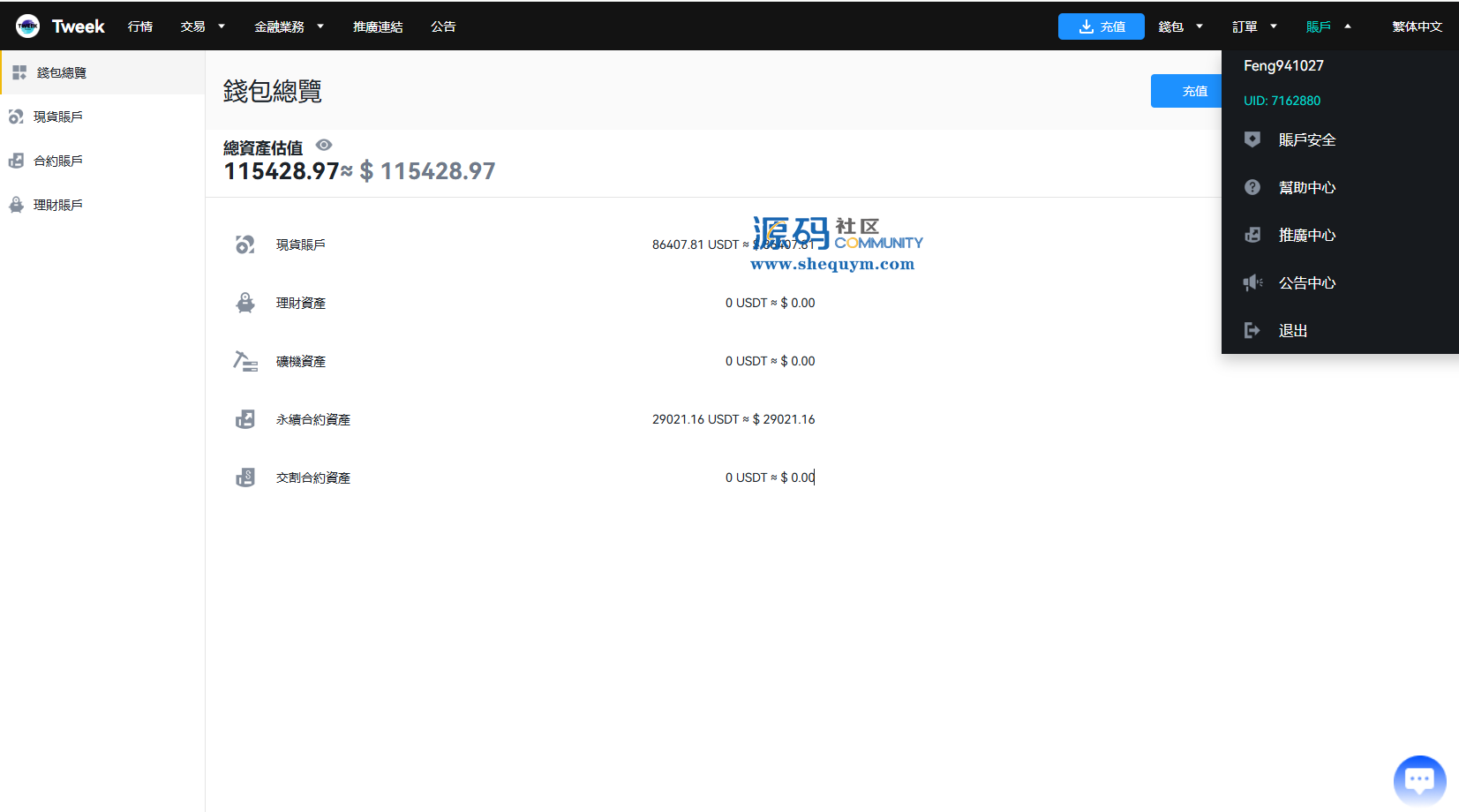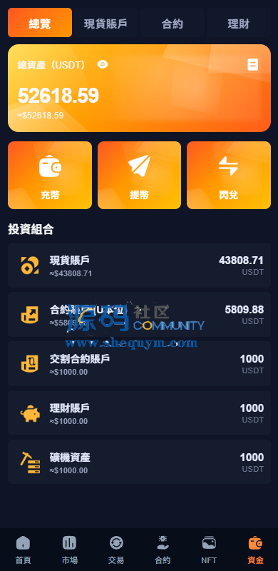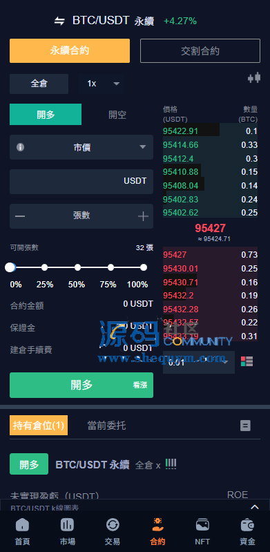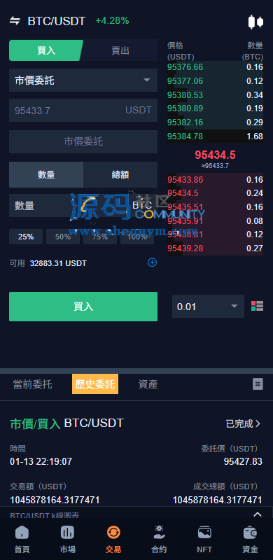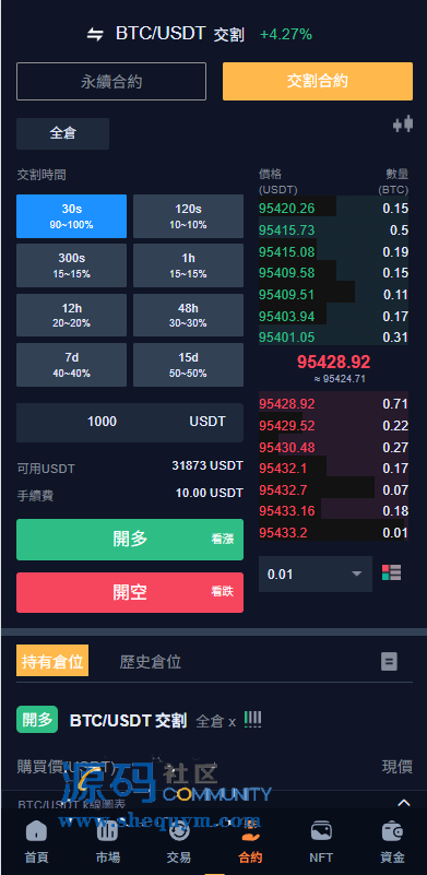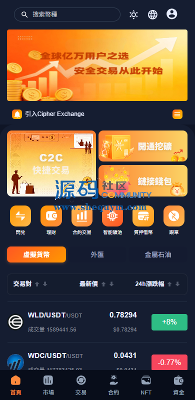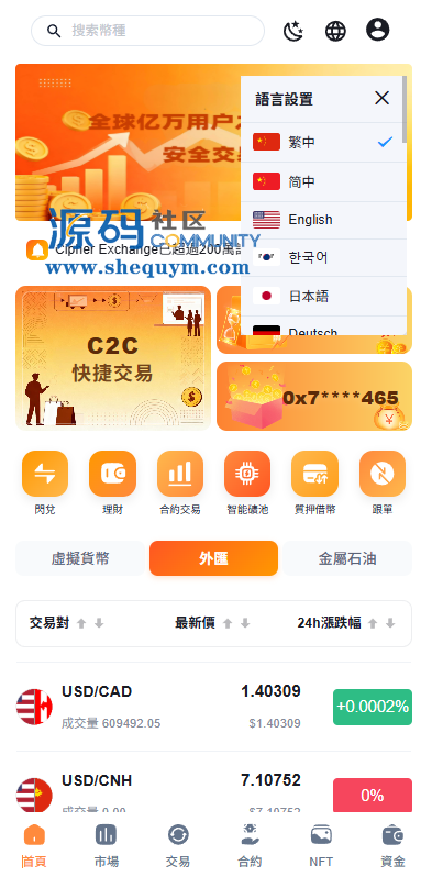 系统功能:永续合约、交割合约、现货交易、理财、C2C、矿池、NFT、质押借币等功能