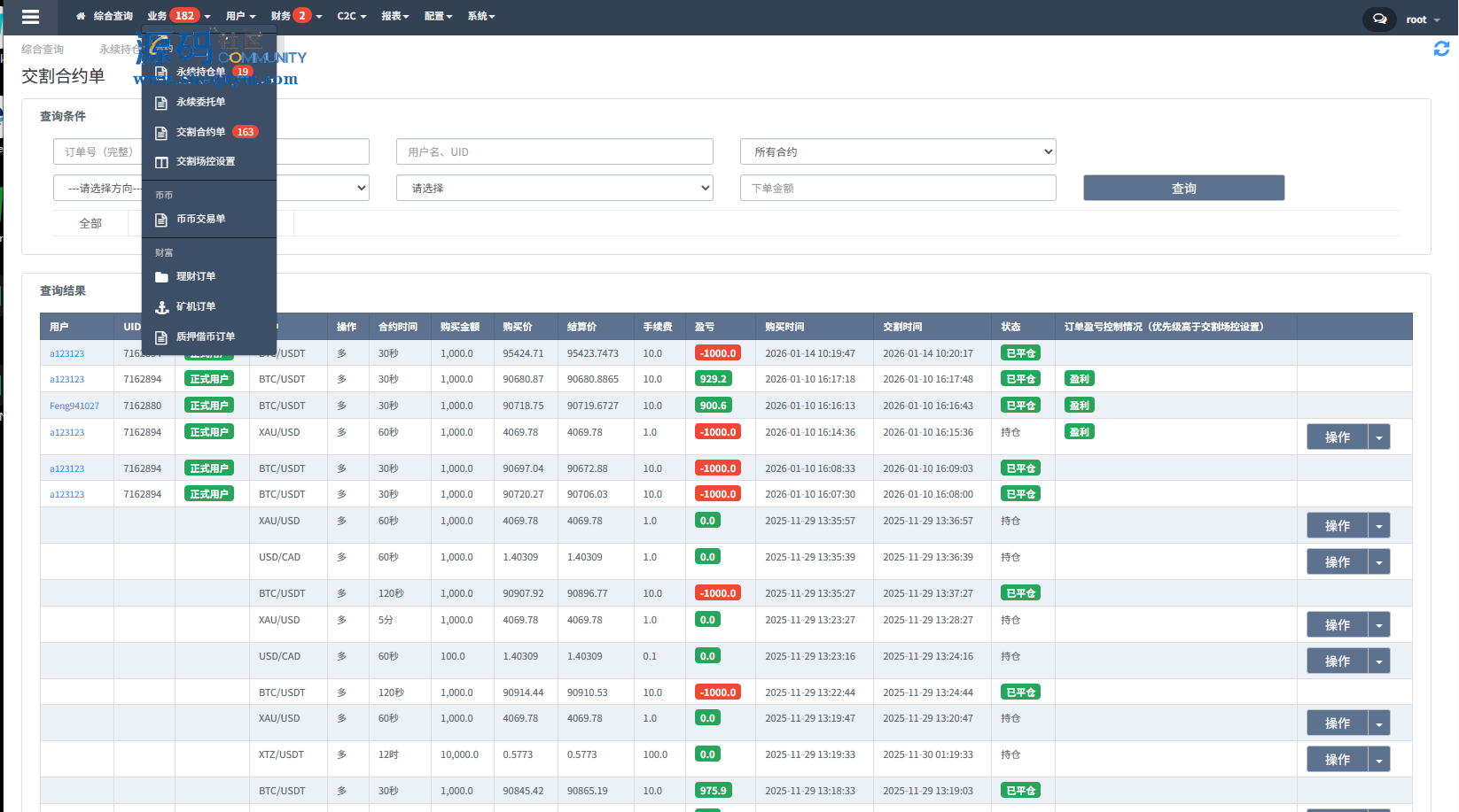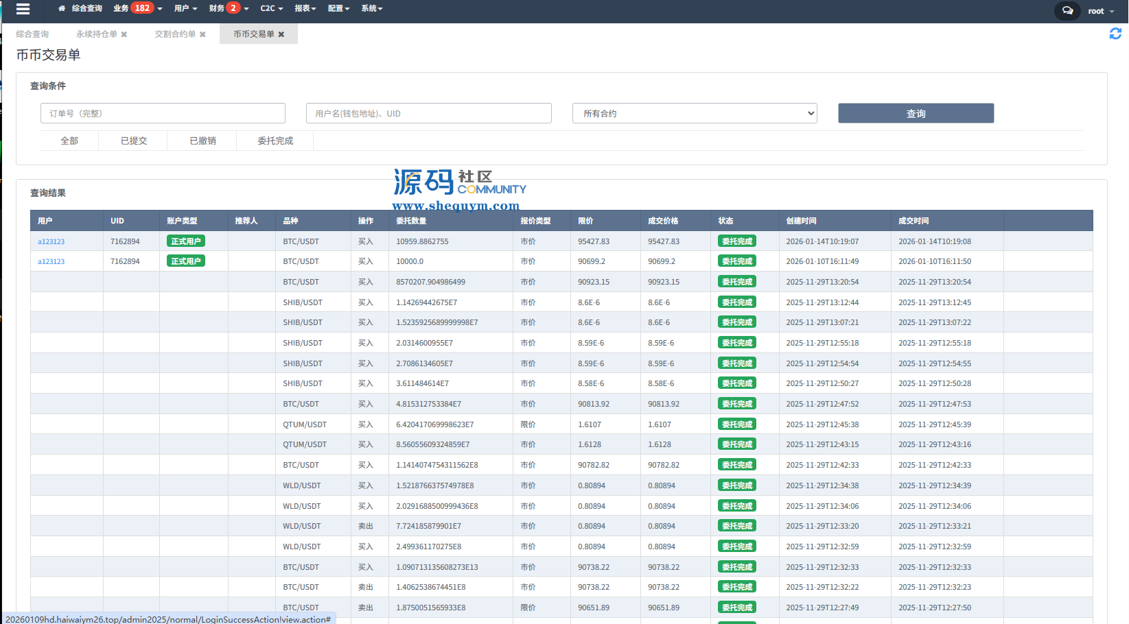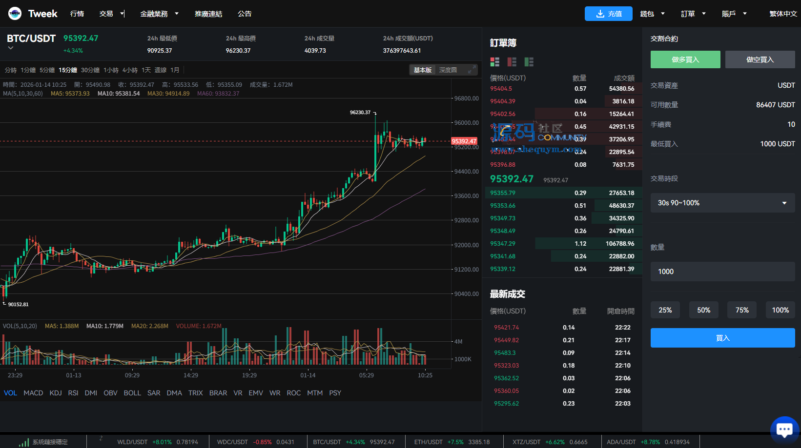 系统功能:永续合约、交割合约、现货交易、理财、C2C、矿池、NFT、质押借币等功能