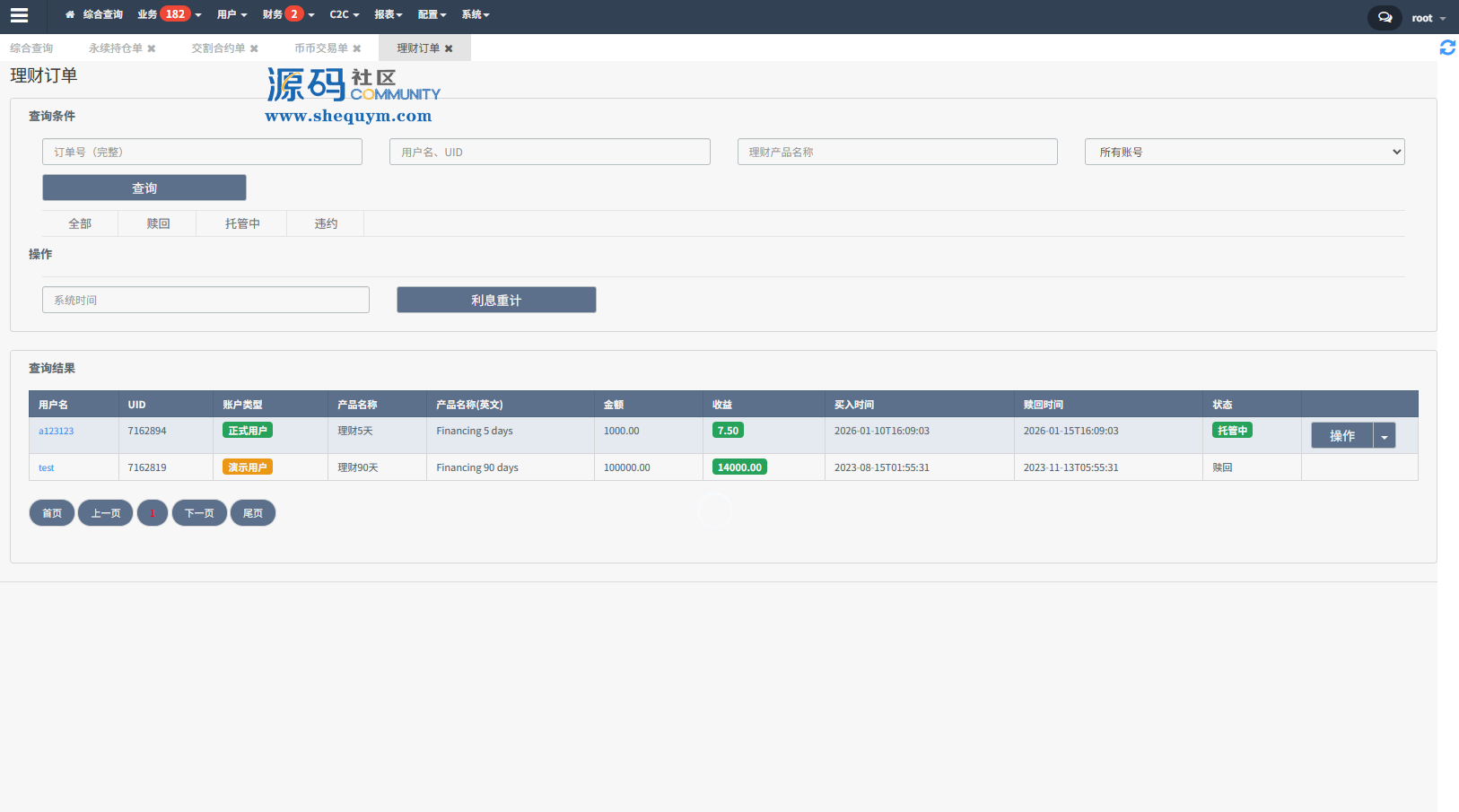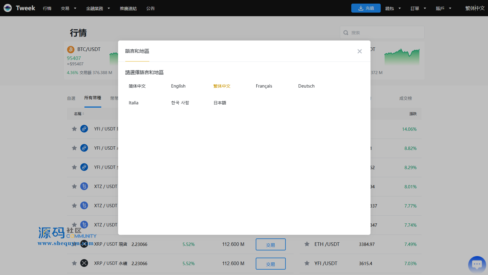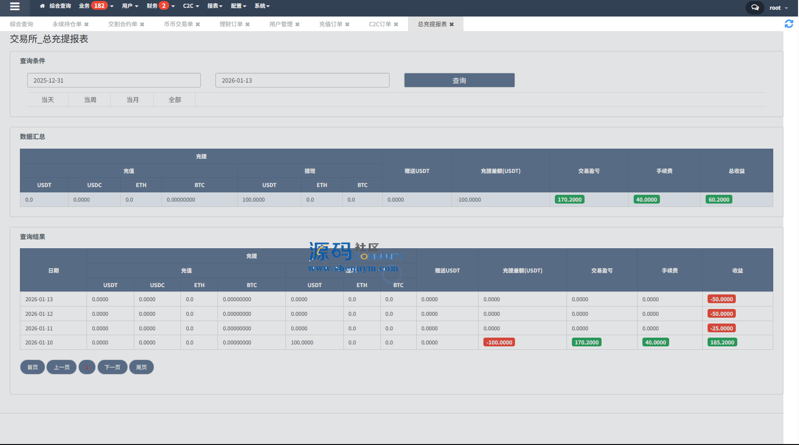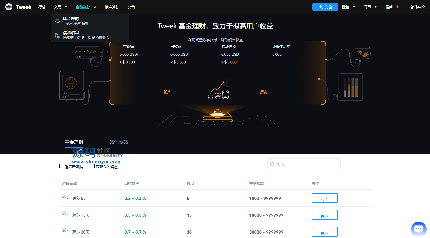 系统功能:永续合约、交割合约、现货交易、理财、C2C、矿池、NFT、质押借币等功能