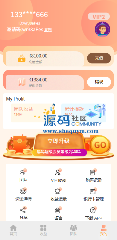 前端VUE开发带多语言,后端php开源带教程支持多级分销推广,支持多VIP等级产品购买,推广任务等功能