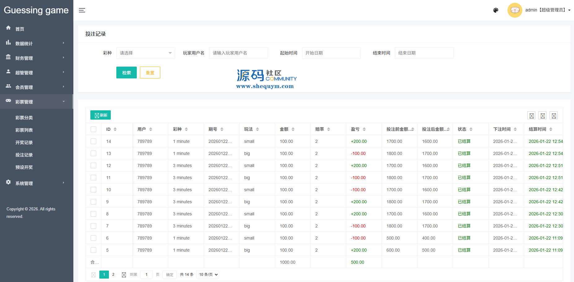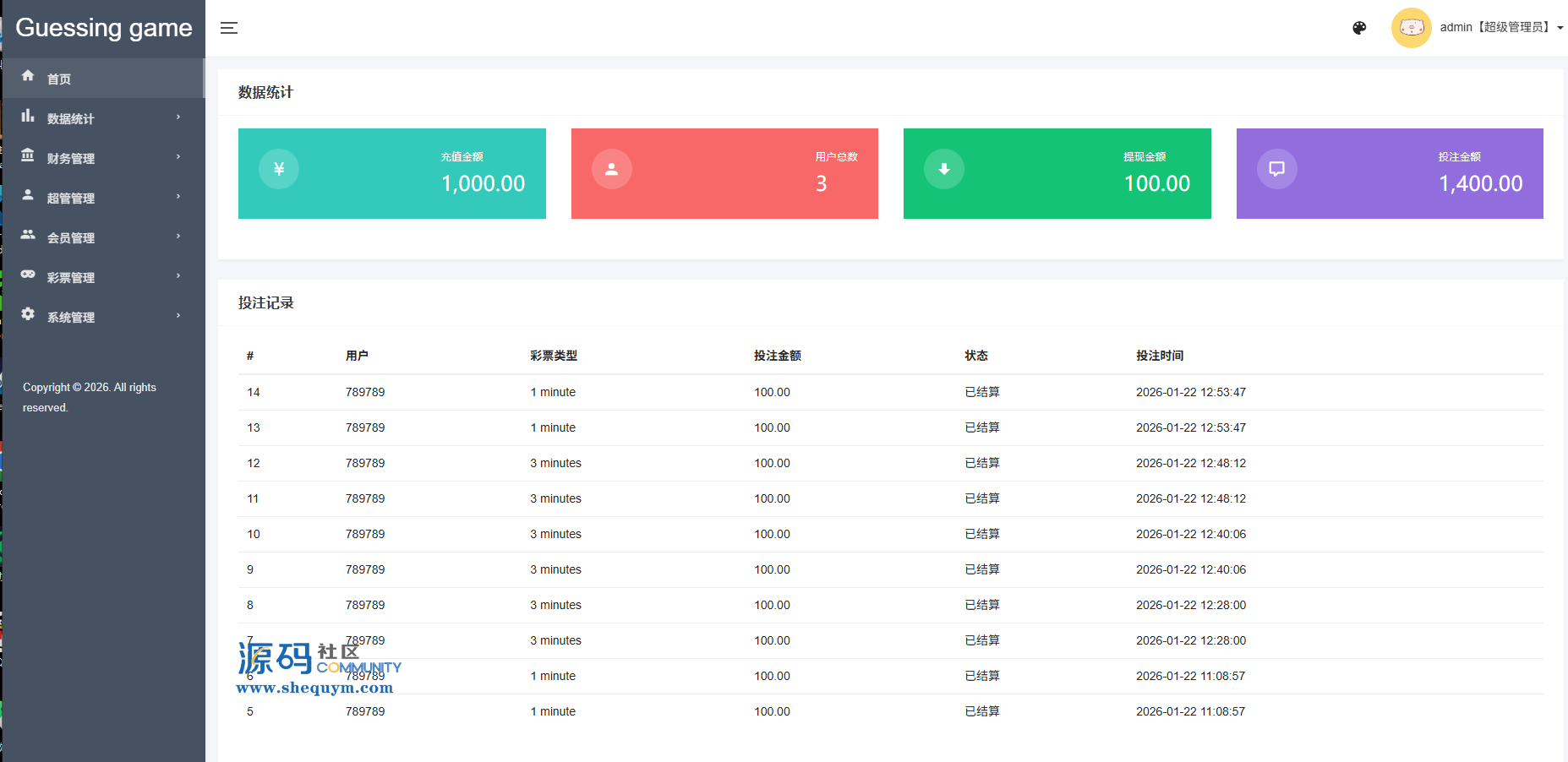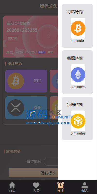 多语言虚拟币竞猜投注游戏,前端VUE带多语言,后端php开源带教程前端UI二开,支持1分钟,3分钟,5分钟下注玩法,带信用分等功能