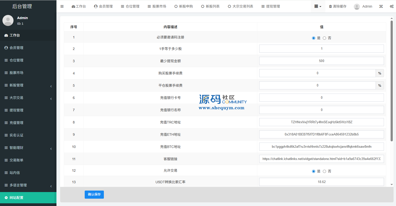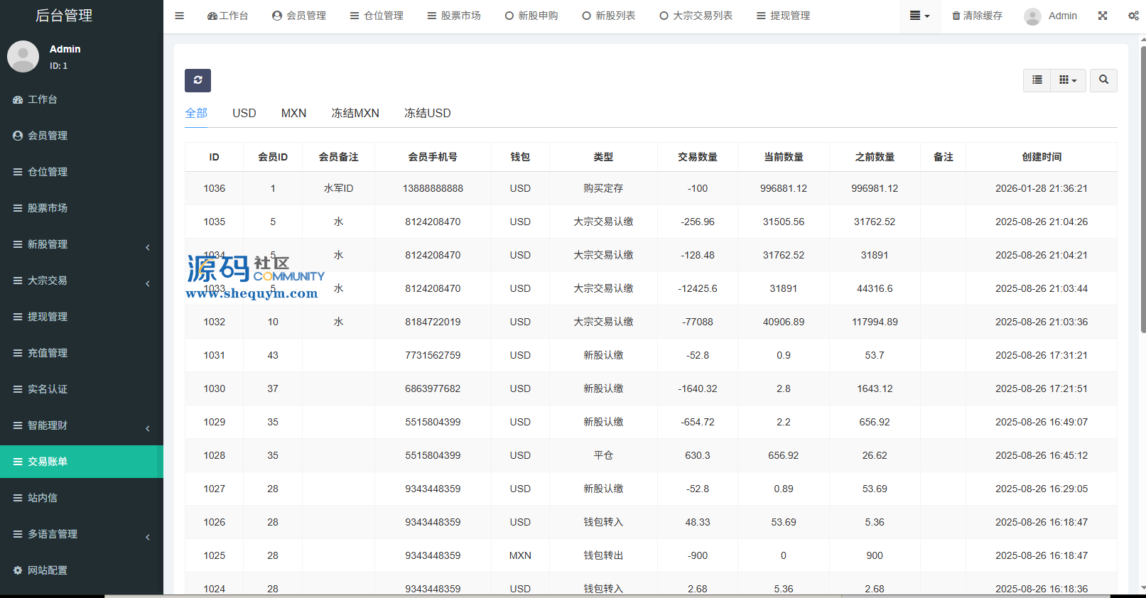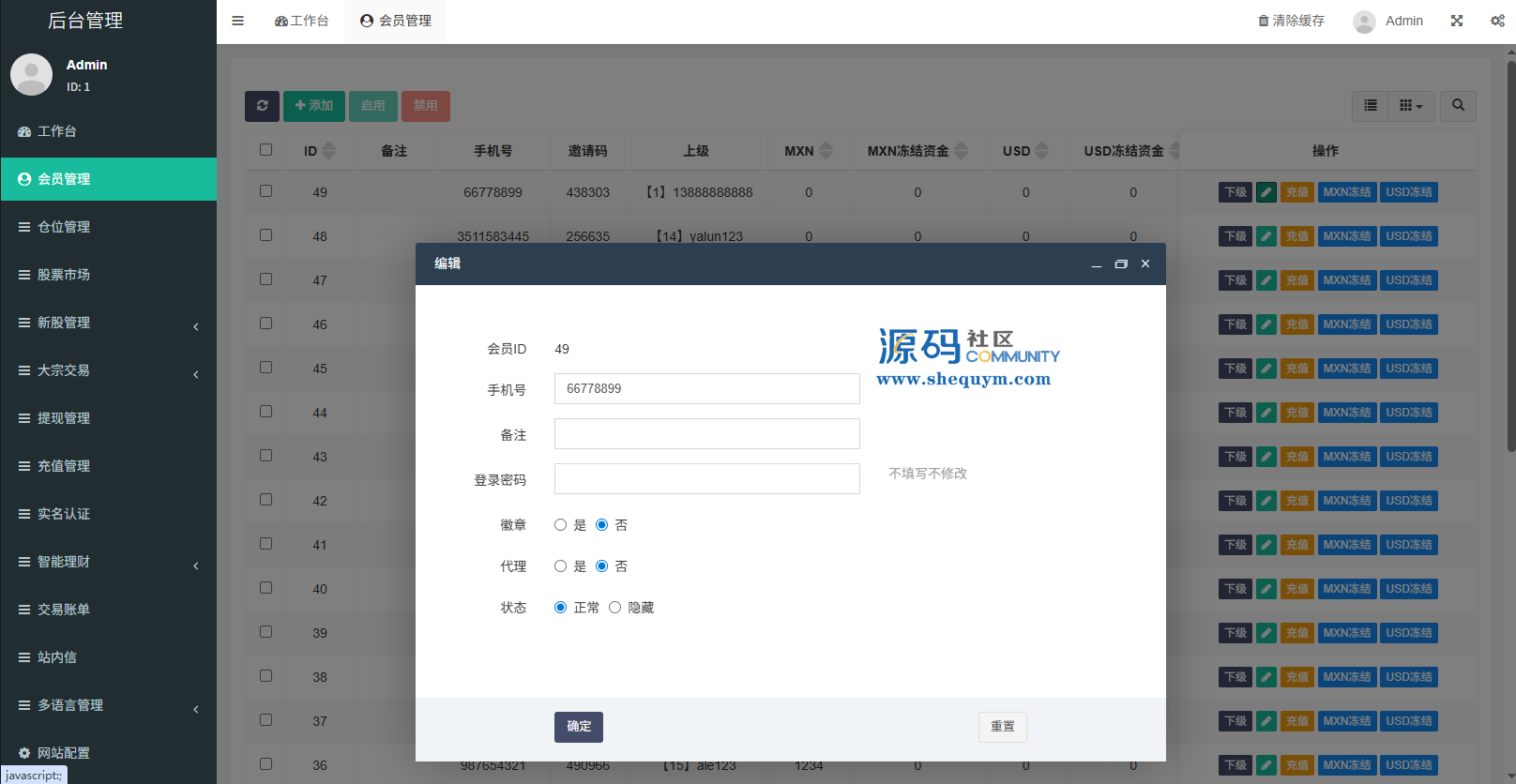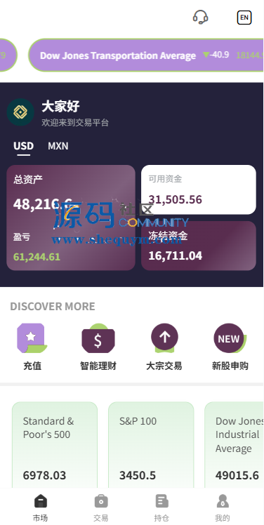 支持代理后台,usdt充值,大宗交易,新股认购,产品理财等功能