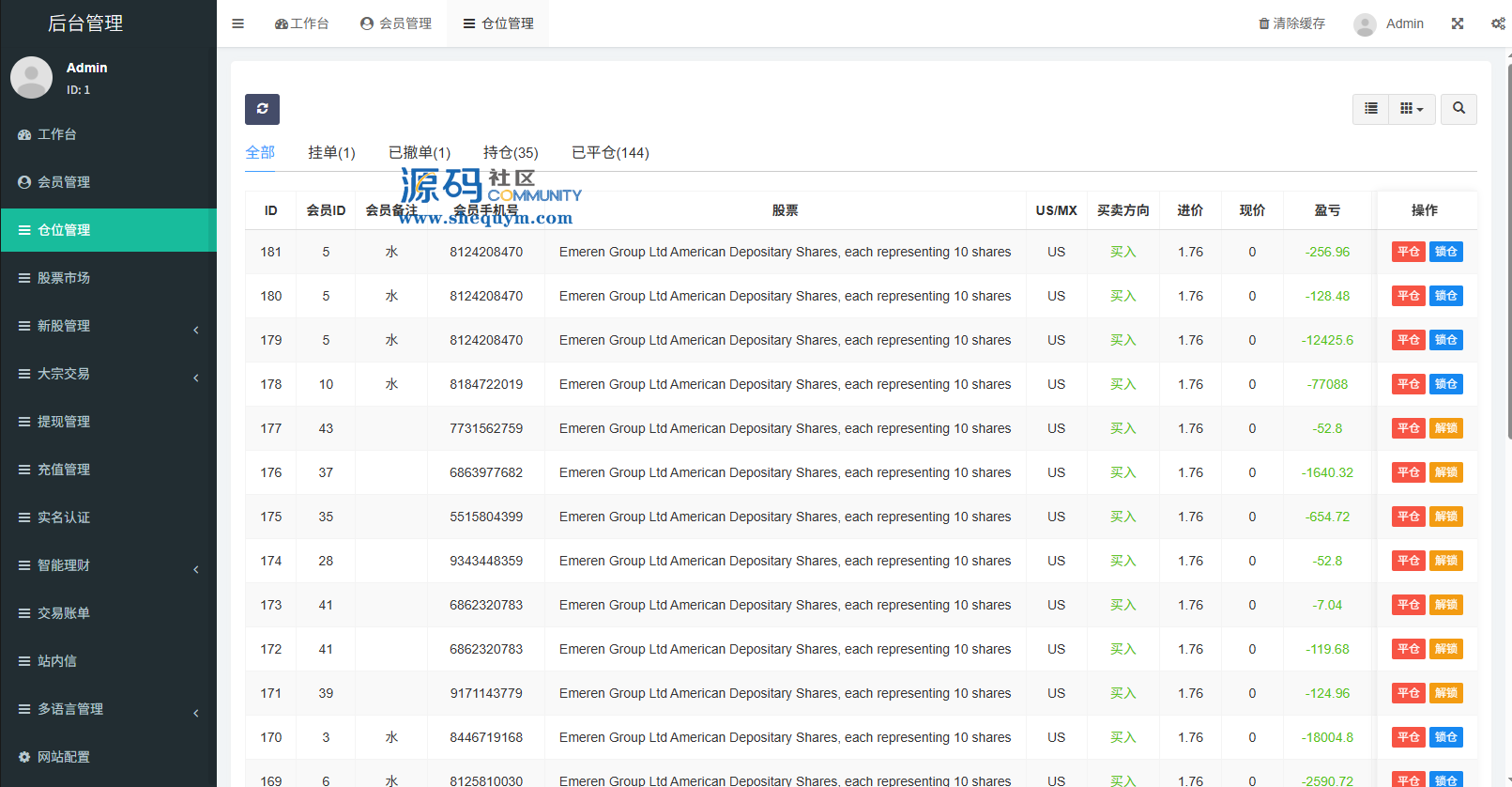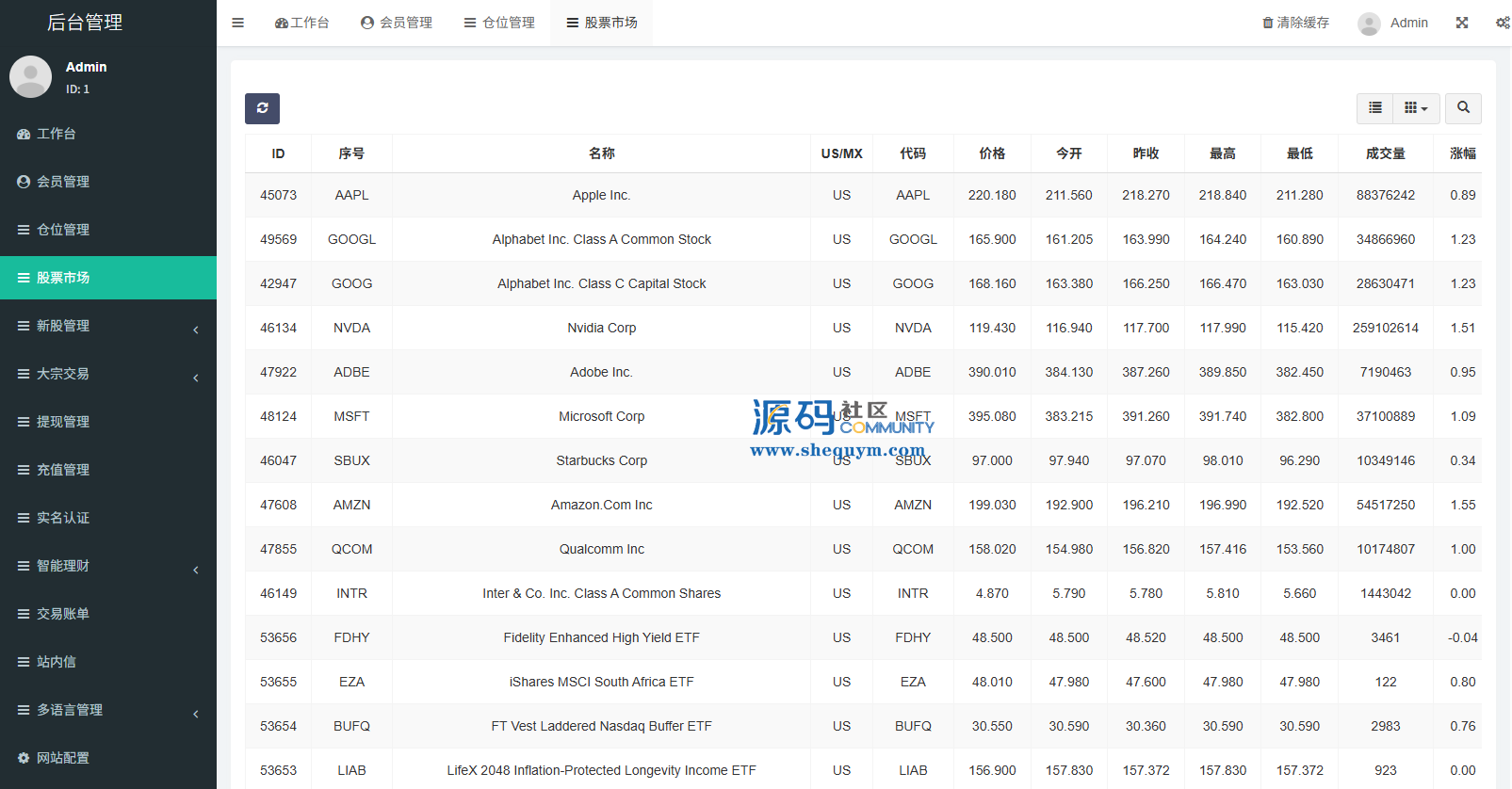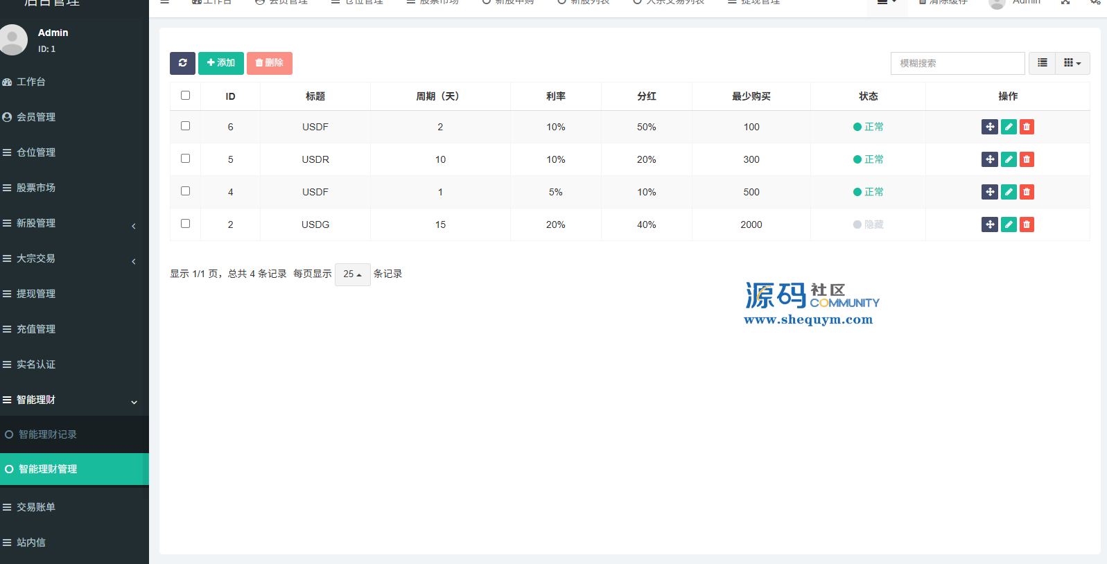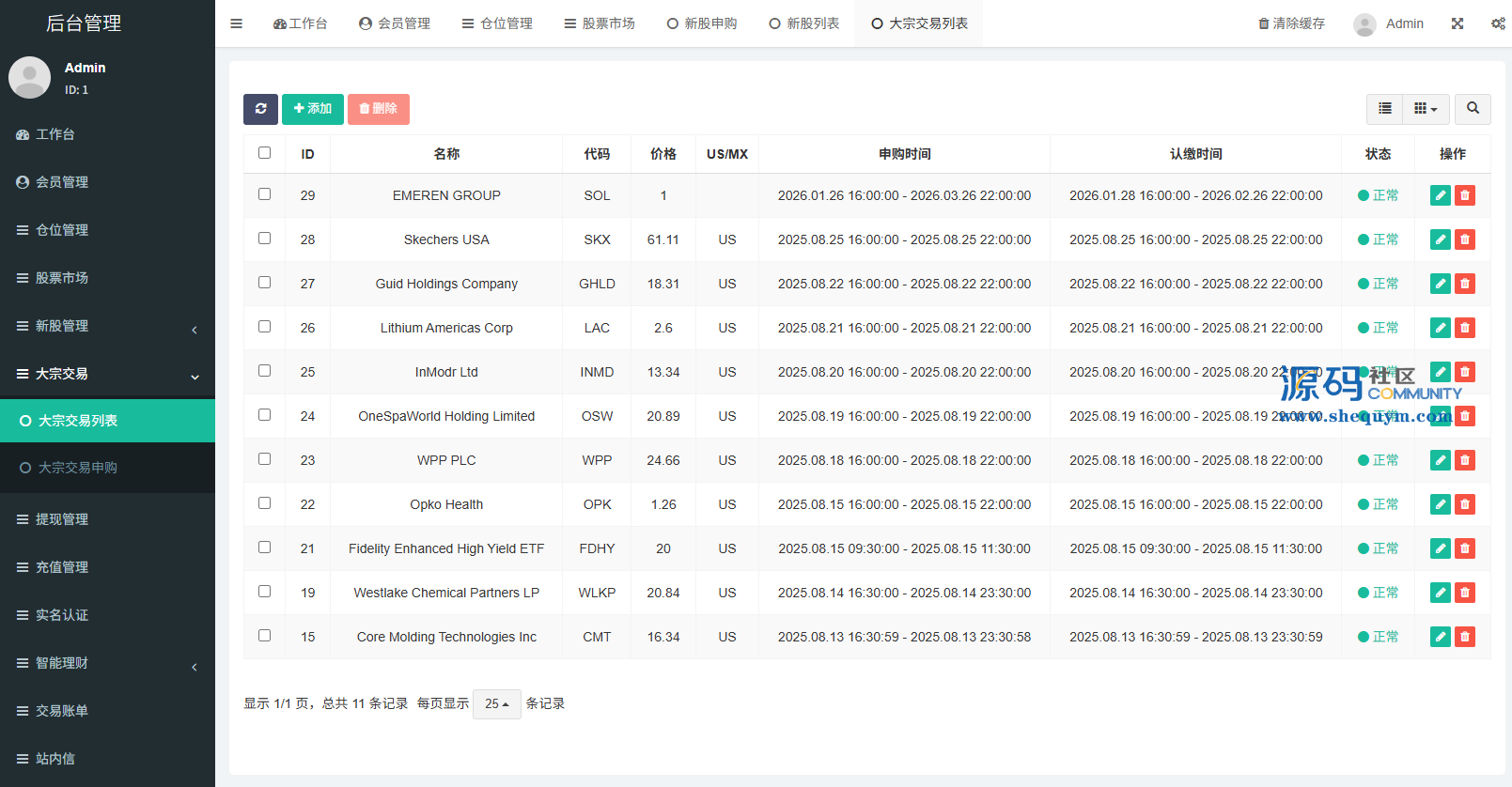 支持代理后台,usdt充值,大宗交易,新股认购,产品理财等功能