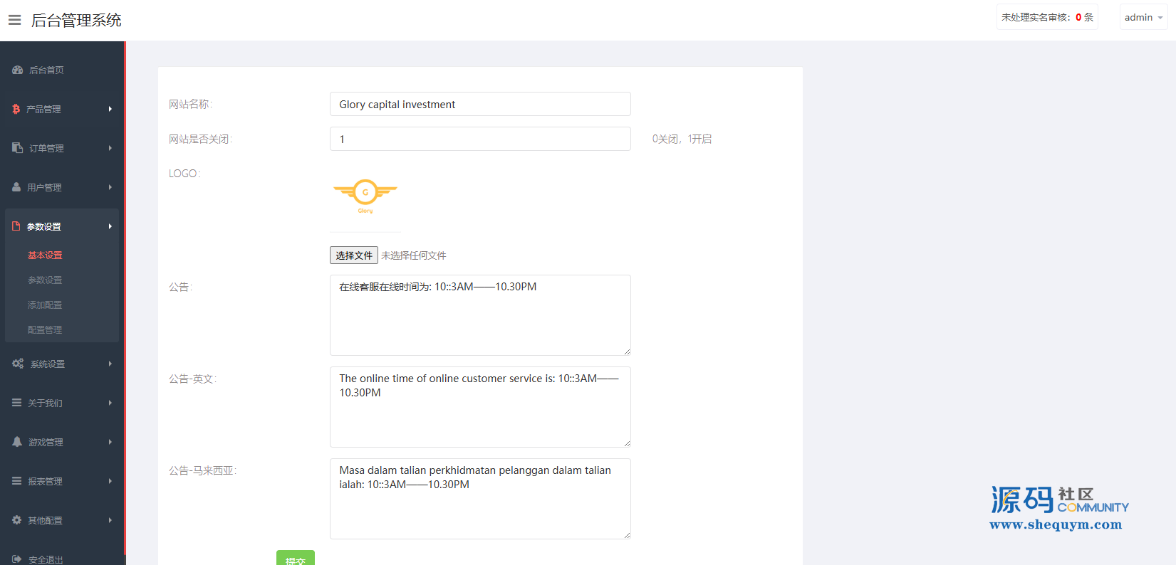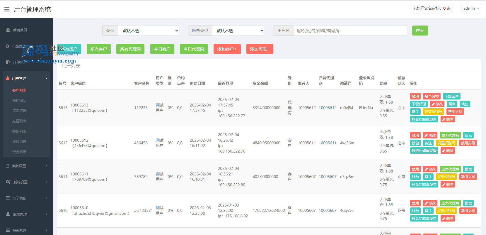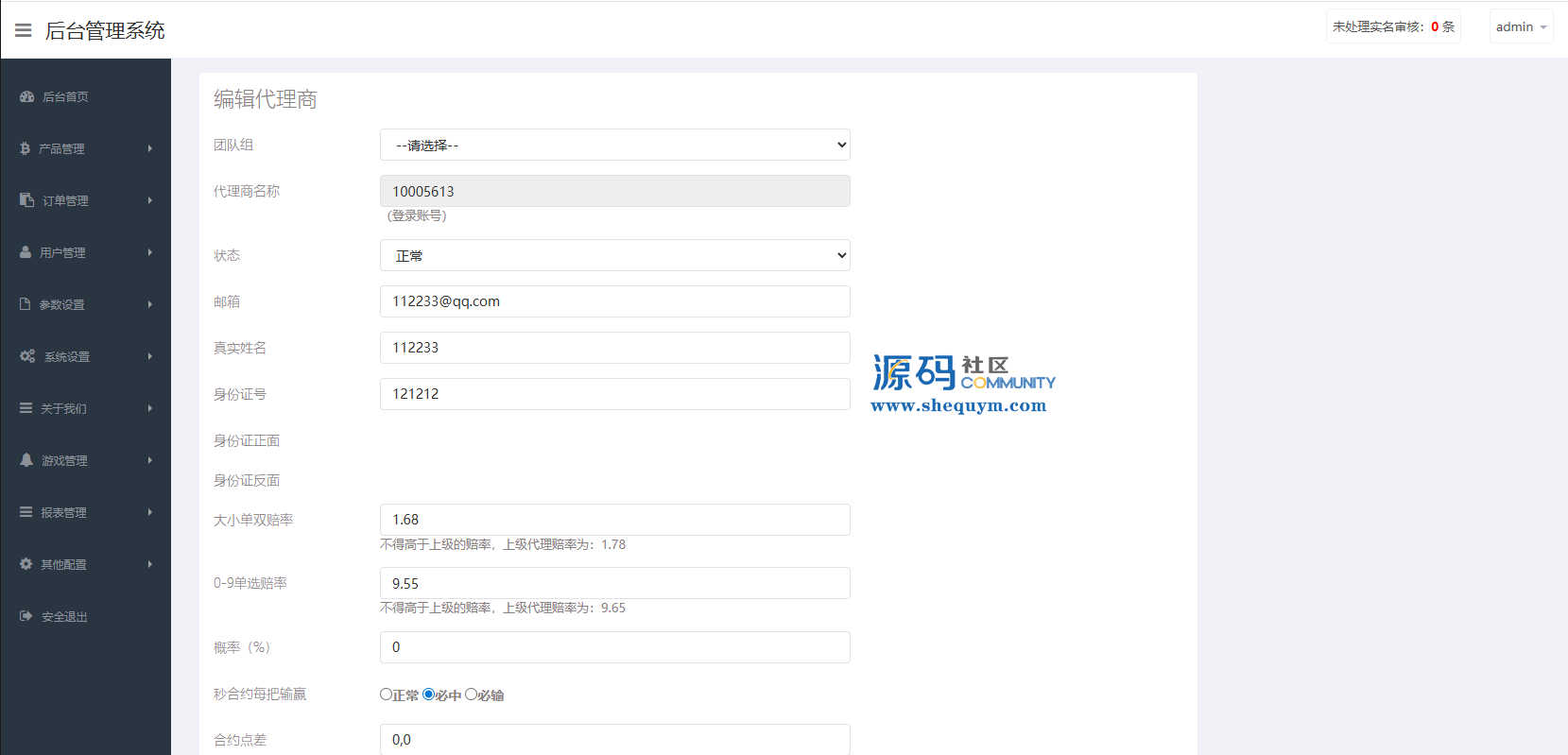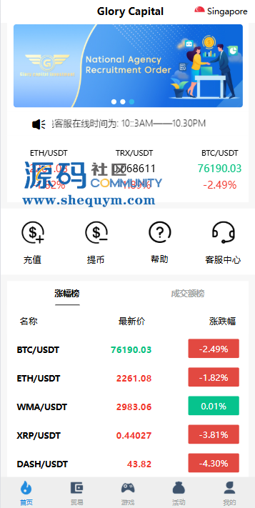 支持代理推广,实名认证,自带在线客服等功能