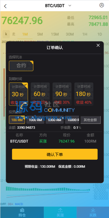 新版微交易系统,前端多语言开源带教程秒合约交易带控制,虚拟币竞猜投注带预设