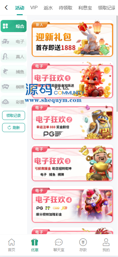 东西还是不错的,有私彩系统彩(PC28、六合彩、快三、时时彩等游戏)、娱乐城(PG电子、体育、真人、捕鱼、棋牌等游戏)、利息宝、返水等功能