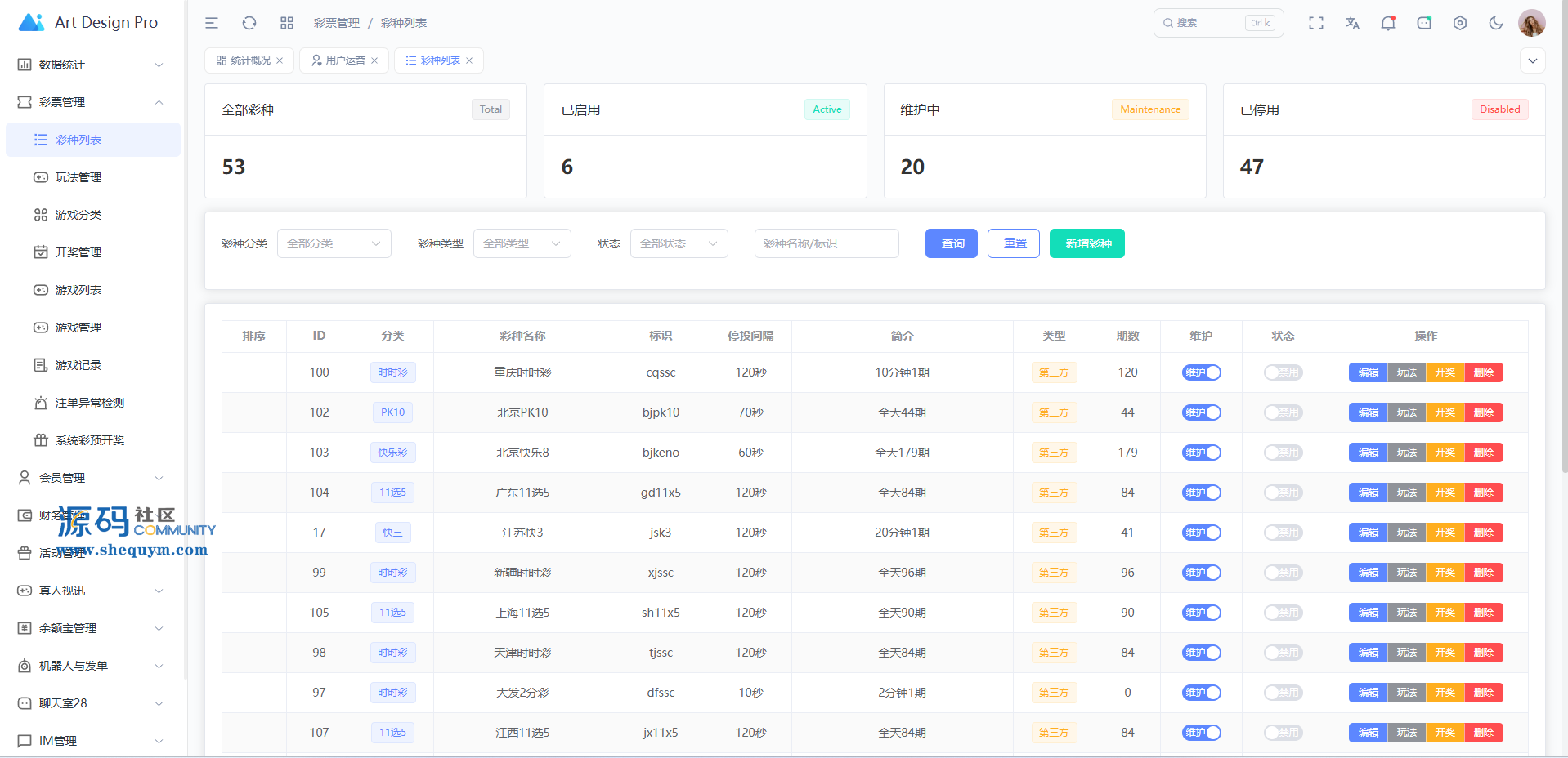 这套系统最大的亮点彩票是系统游戏的,不是第三方接口游戏,真人、体育、电子那些是第三方接口