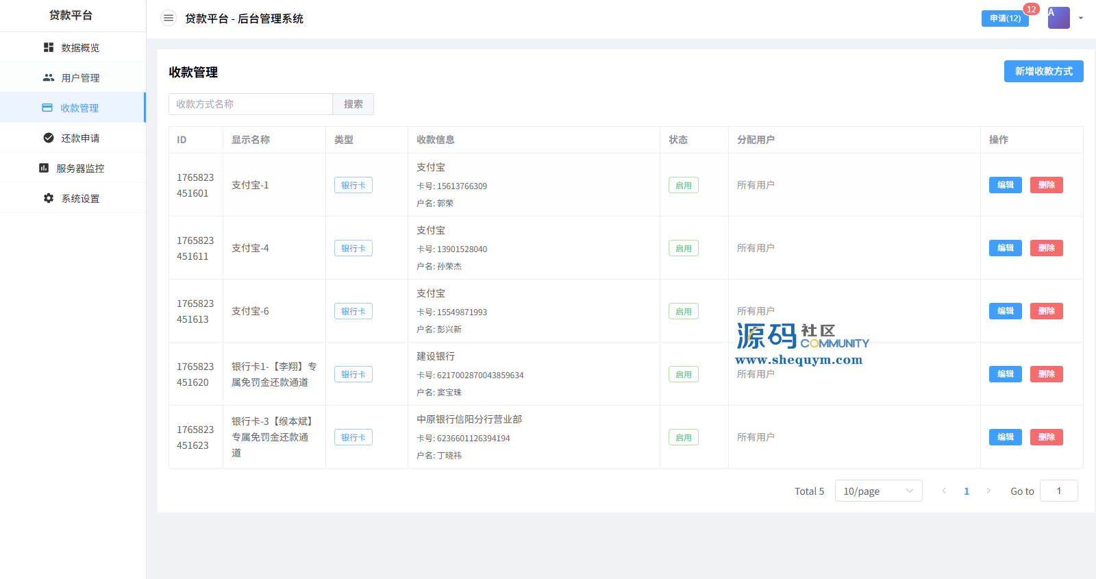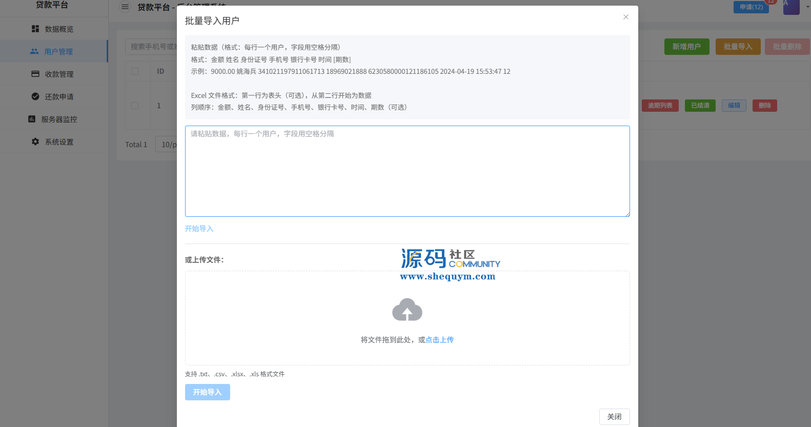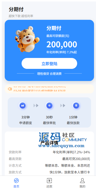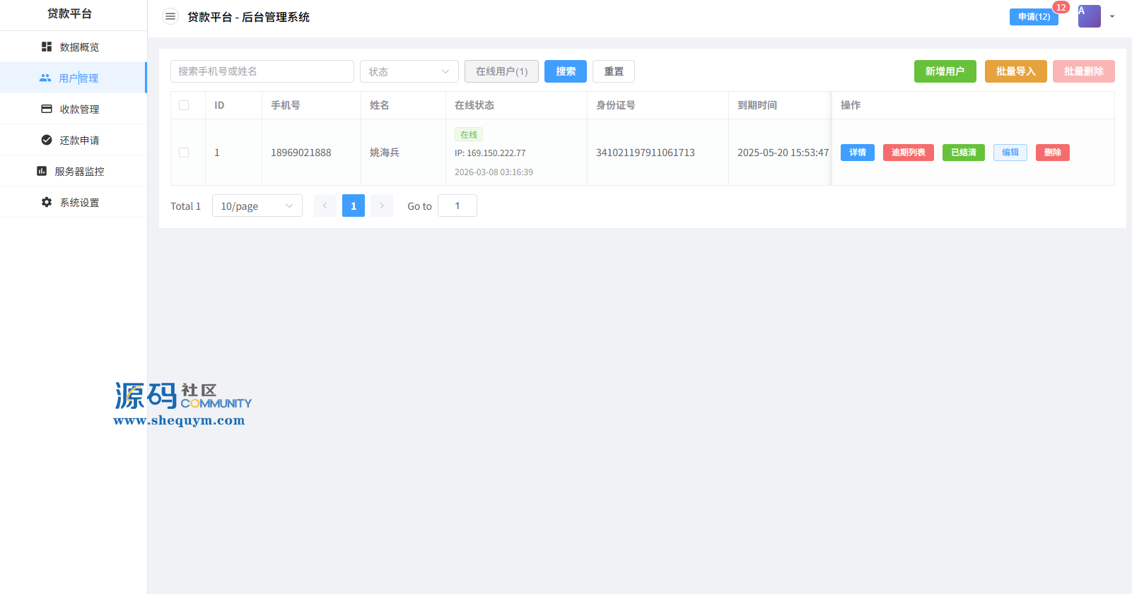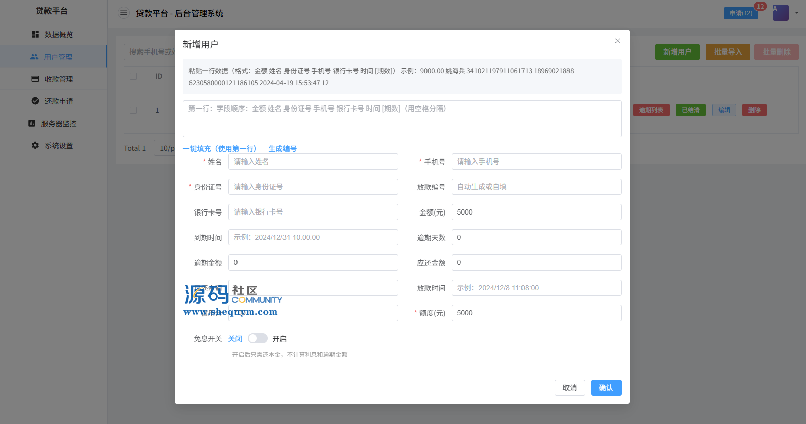 系统前端后台VUE开发,服务端JAVA开发全开源带源码后台可一键填充用户数据生成贷款逾期前端用户手机登陆,就能查看自己的欠款信息