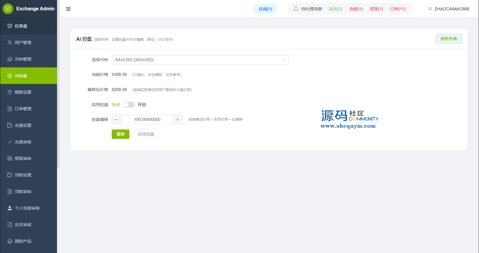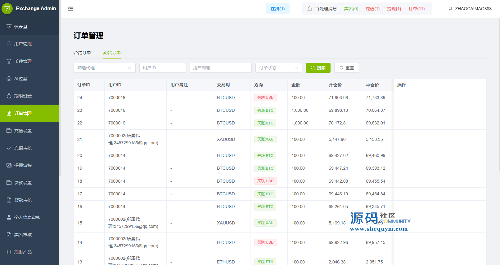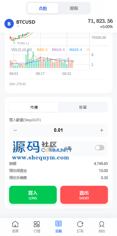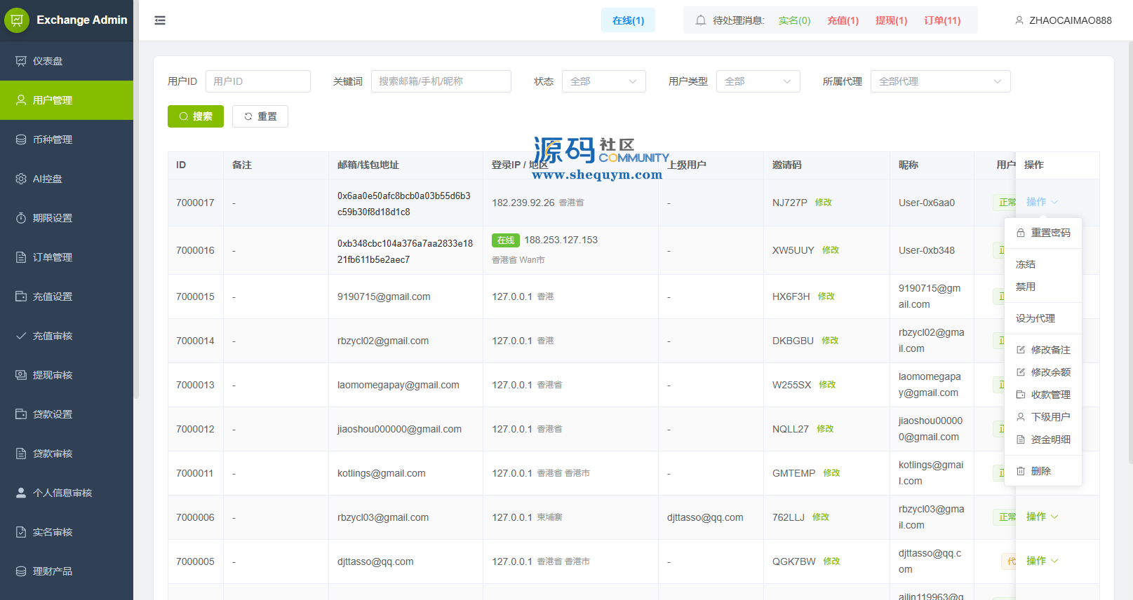 功能支持:合约,期权,贷款,理财,实名认证,权限代理,AI控盘等功能