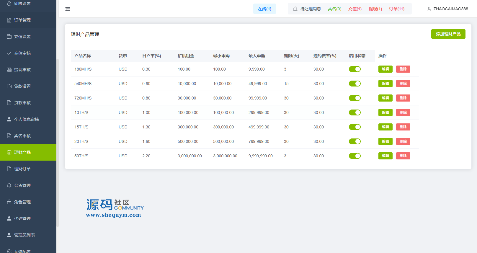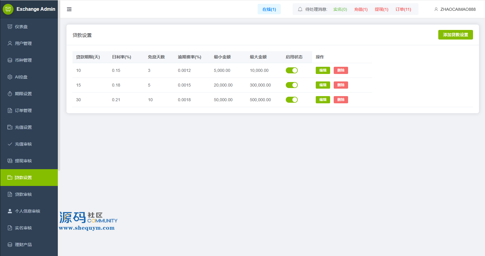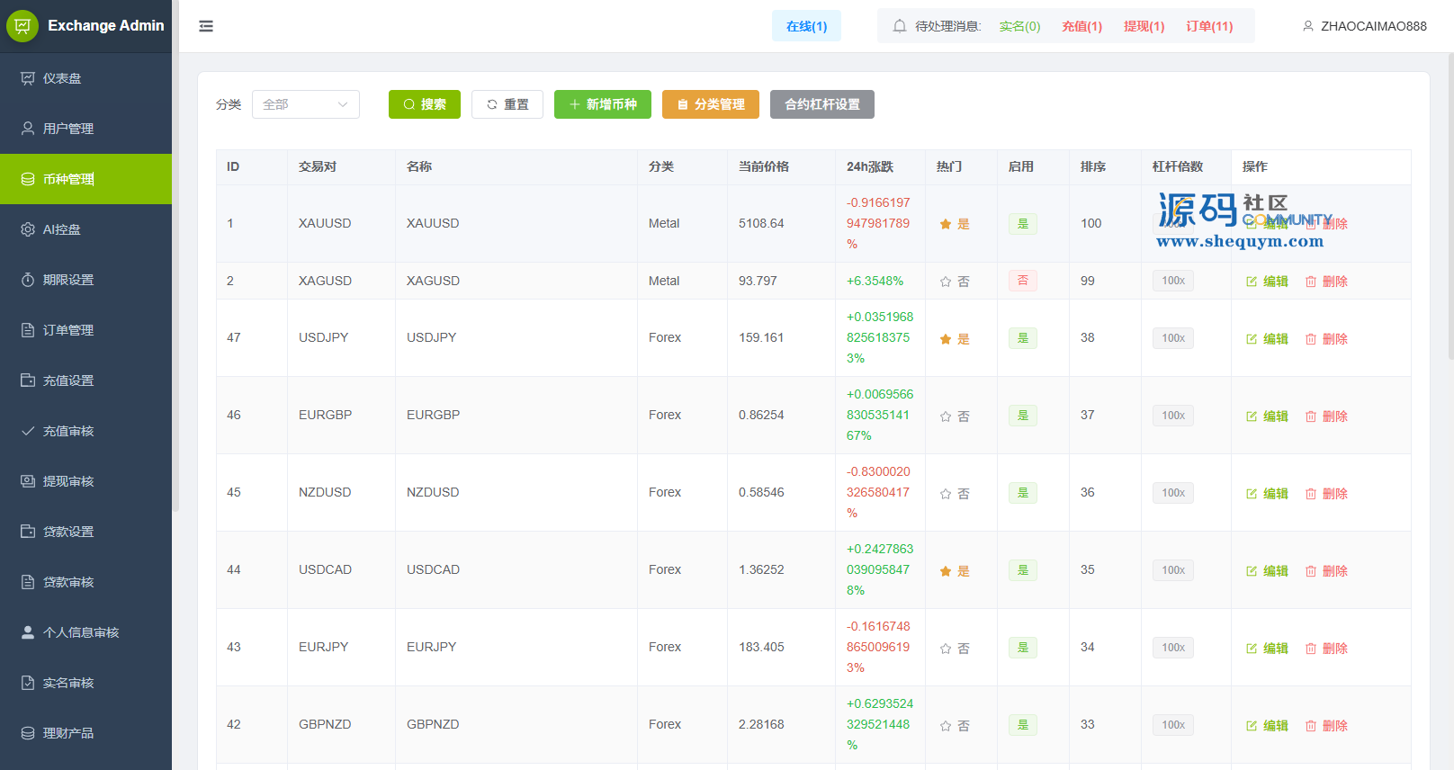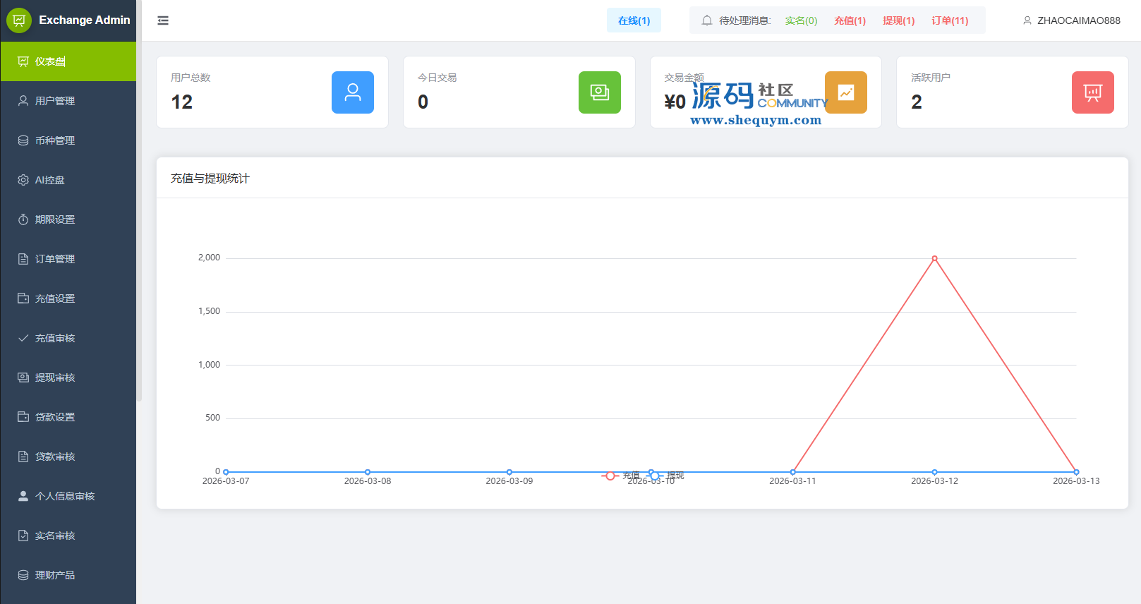功能支持:合约,期权,贷款,理财,实名认证,权限代理,AI控盘等功能