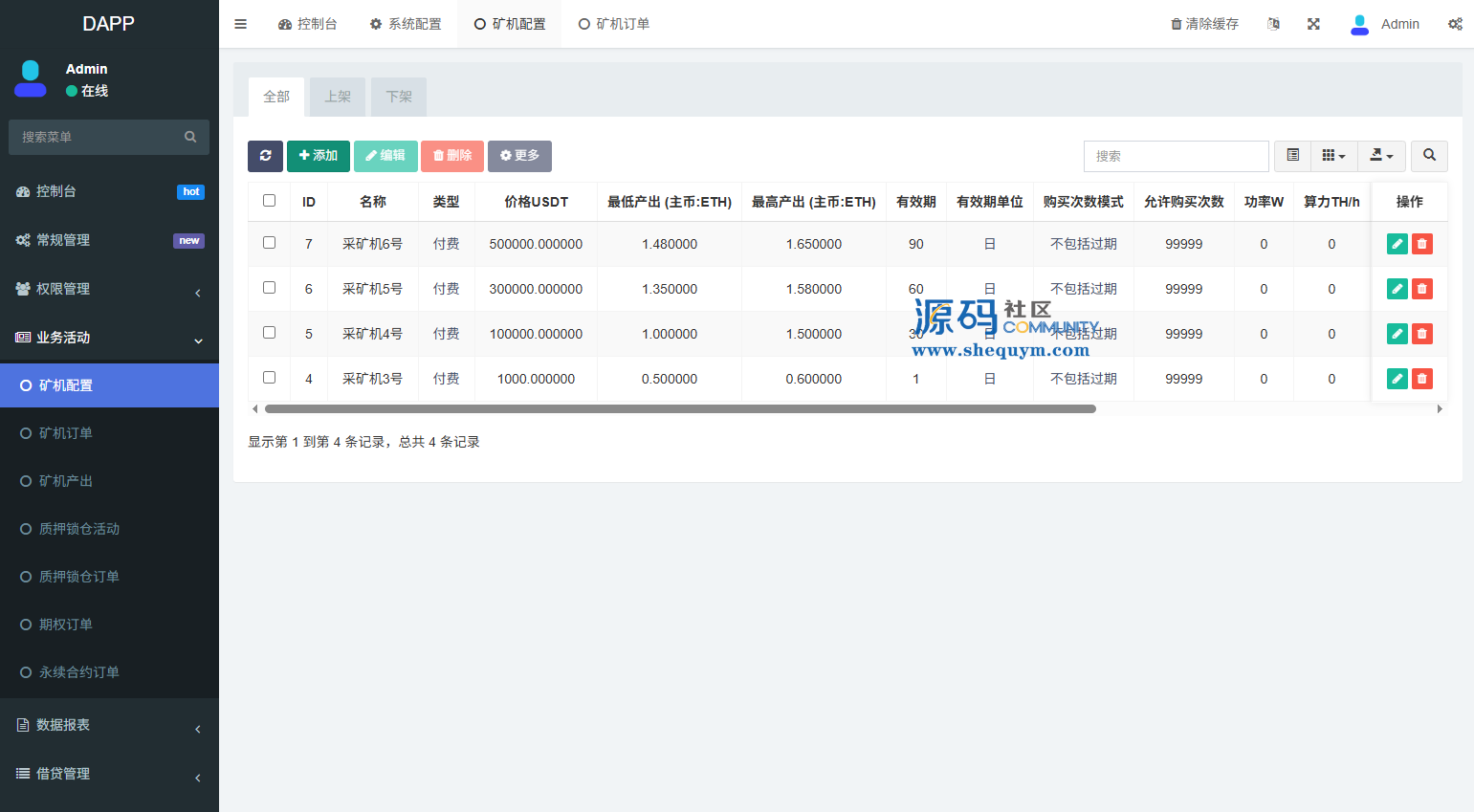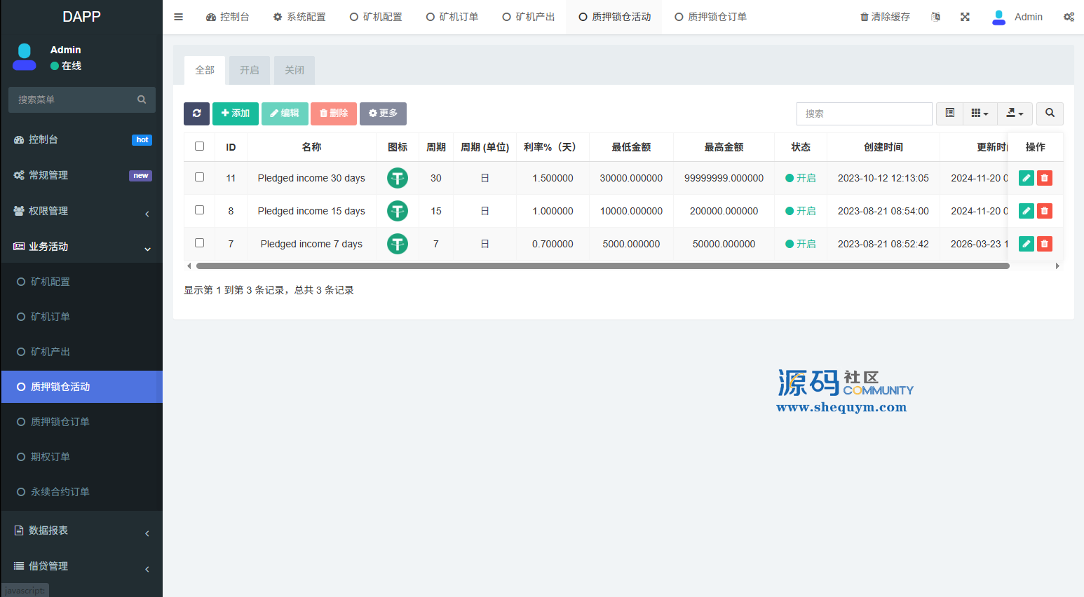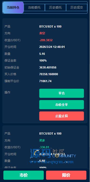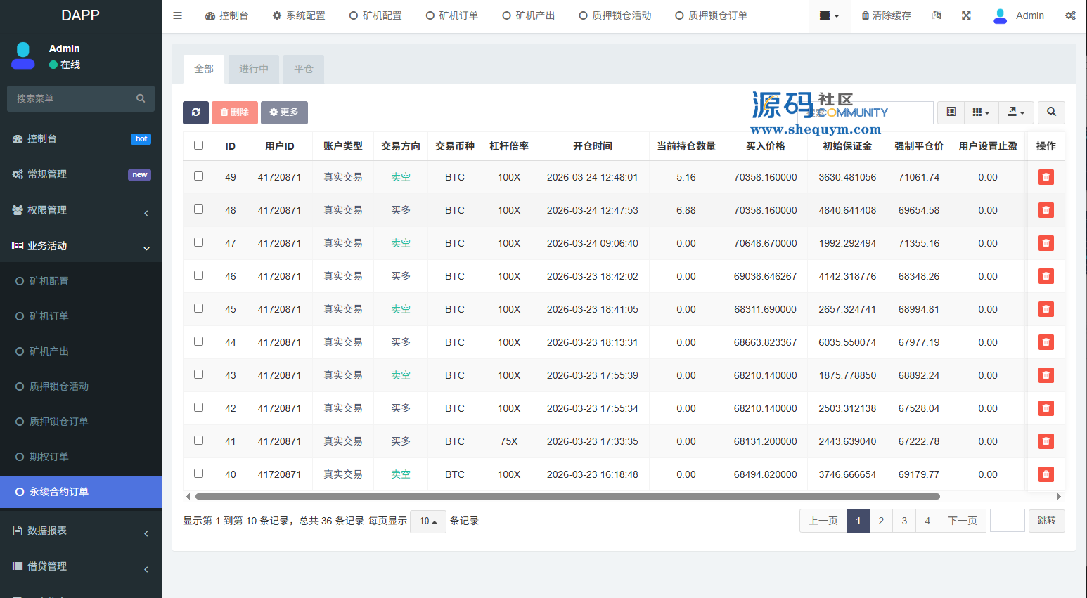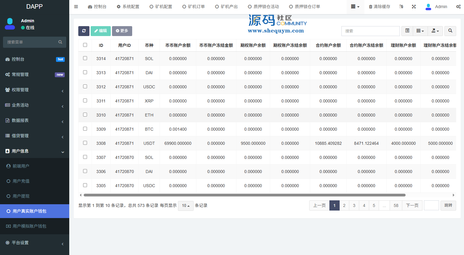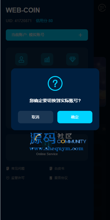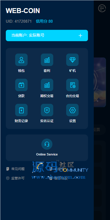 支持期权交易,合约交易,质押,信用分,贷款,实名认证等功能