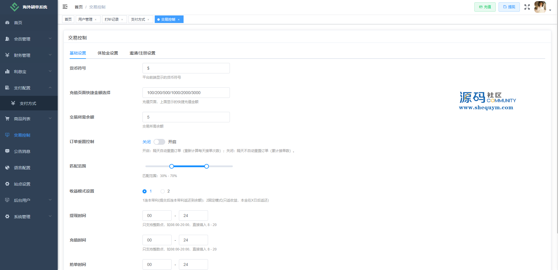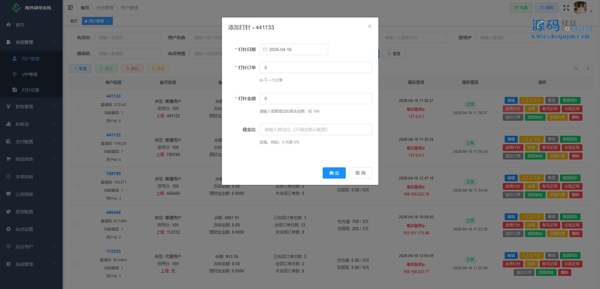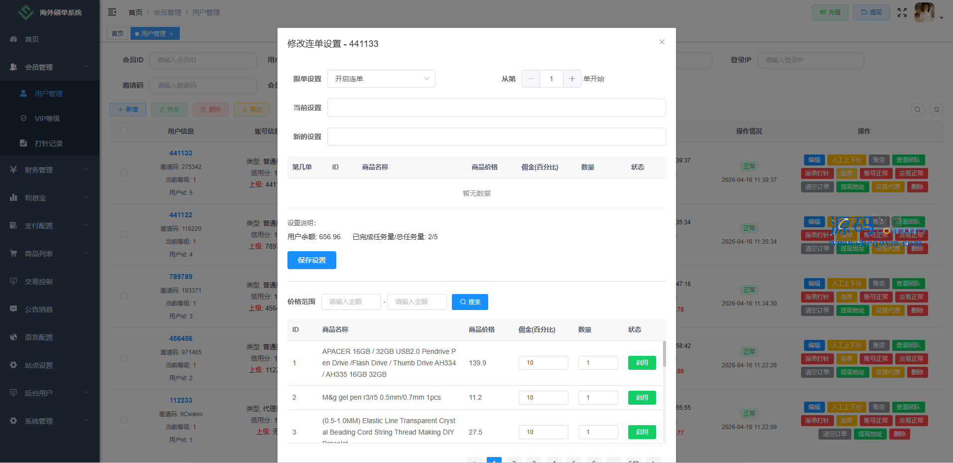 功能包括:金额打针、连单、信用分管理、重置订单、时区设置、余额宝、代理等多种功能。